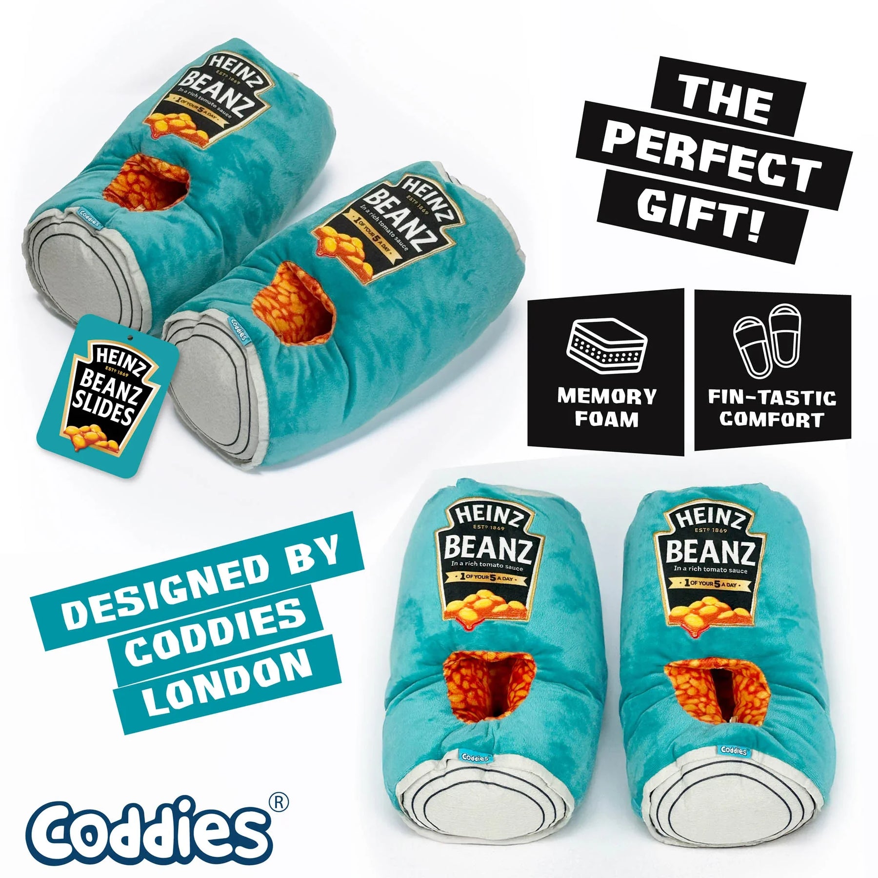 - OFFICIAL CODDIES HEINZ MERCHANDISE: Celebrate the legendary Heinz Beanz with these high-quality, officially licensed slippers