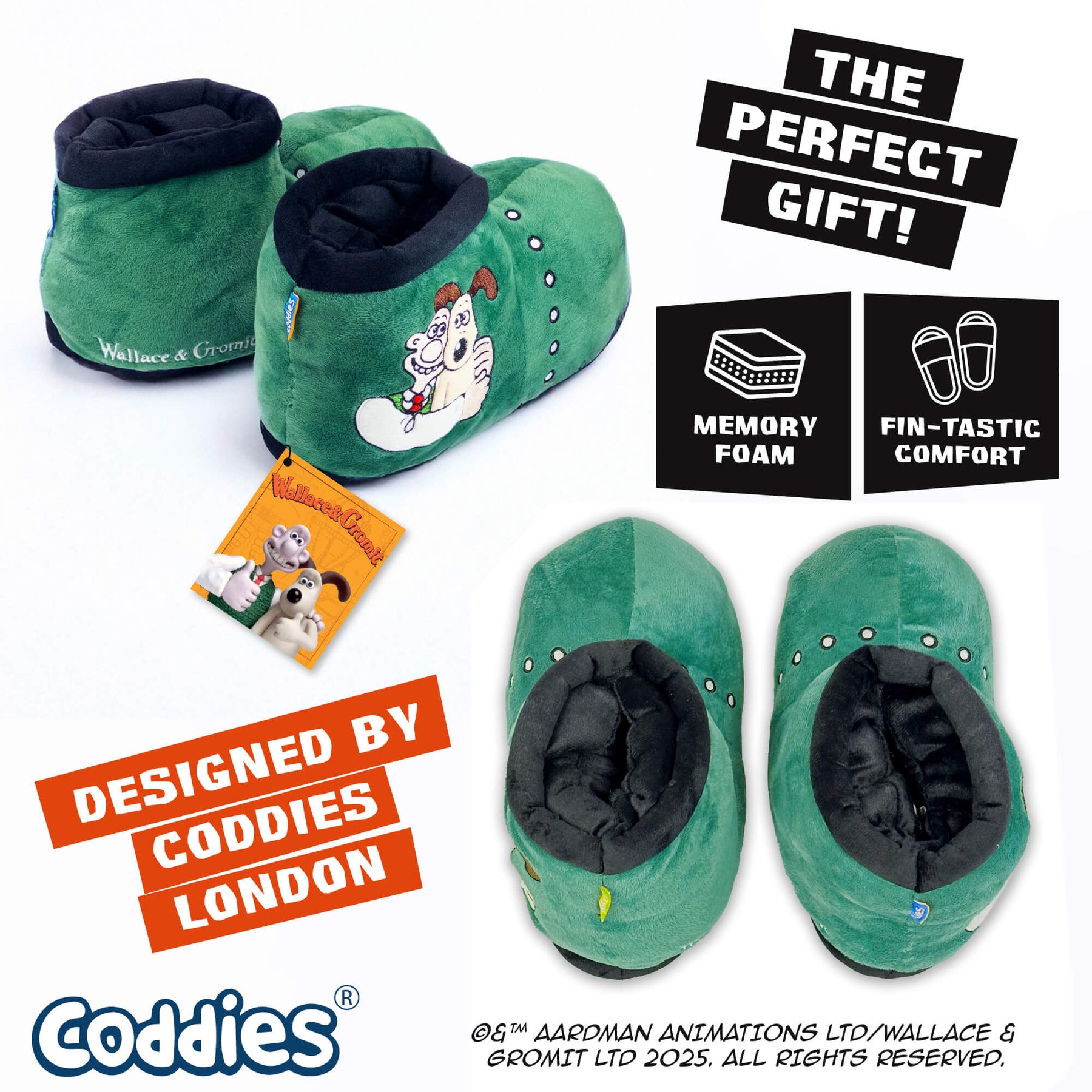 - OFFICIAL CODDIES AARDMAN MERCHANDISE: Celebrate the legendary Wallace & Gromit with these high-quality, officially licensed slippers.